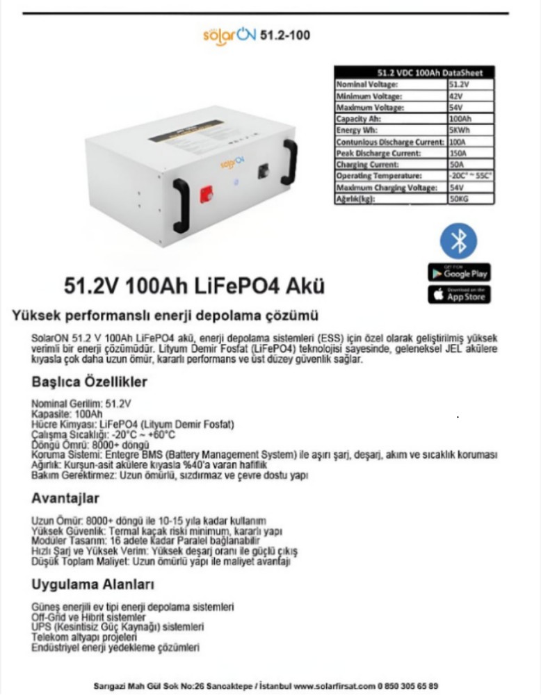 SolarON 51.2 V 100 AH LiFePO4 Batarya